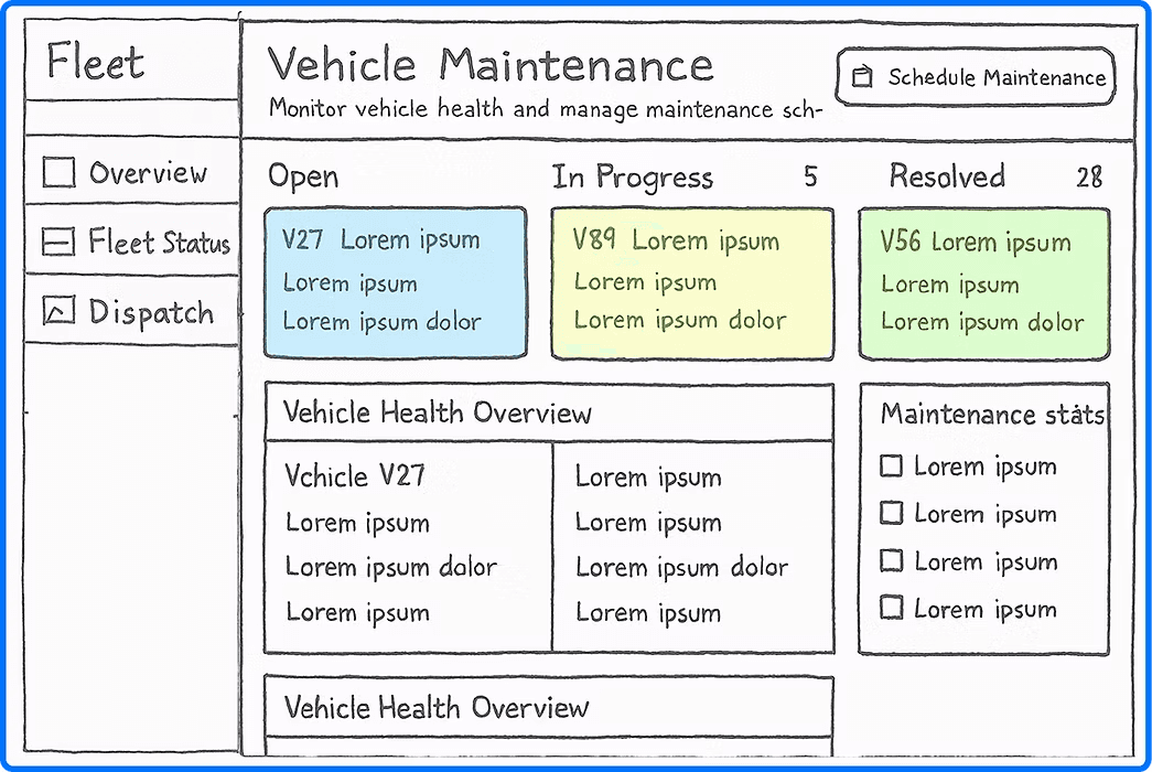 We designed a simulated fleet management system that brings everything together in a single command center. It empowers operators to respond faster, reroute smarter, and maintain vehicles more efficiently.