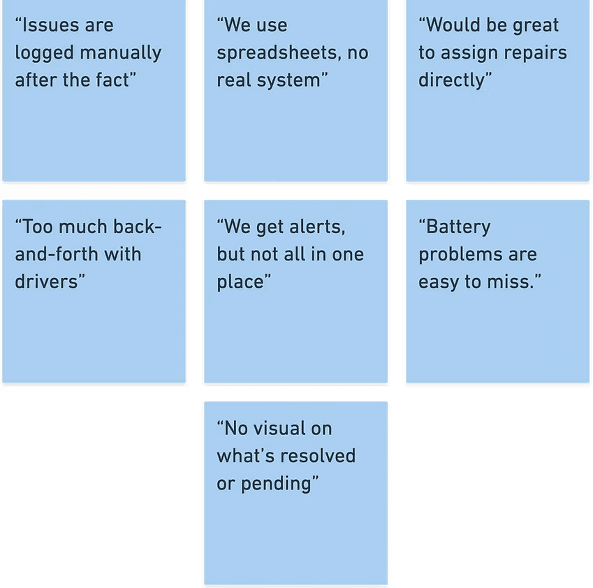 Designing for autonomous fleet ops came with a unique challenge: this exact workflow doesn’t exist yet. Companies like Waymo and Zoox operate these systems, but we didn’t have direct access to them and local fleet managers don’t manage autonomy at scale.