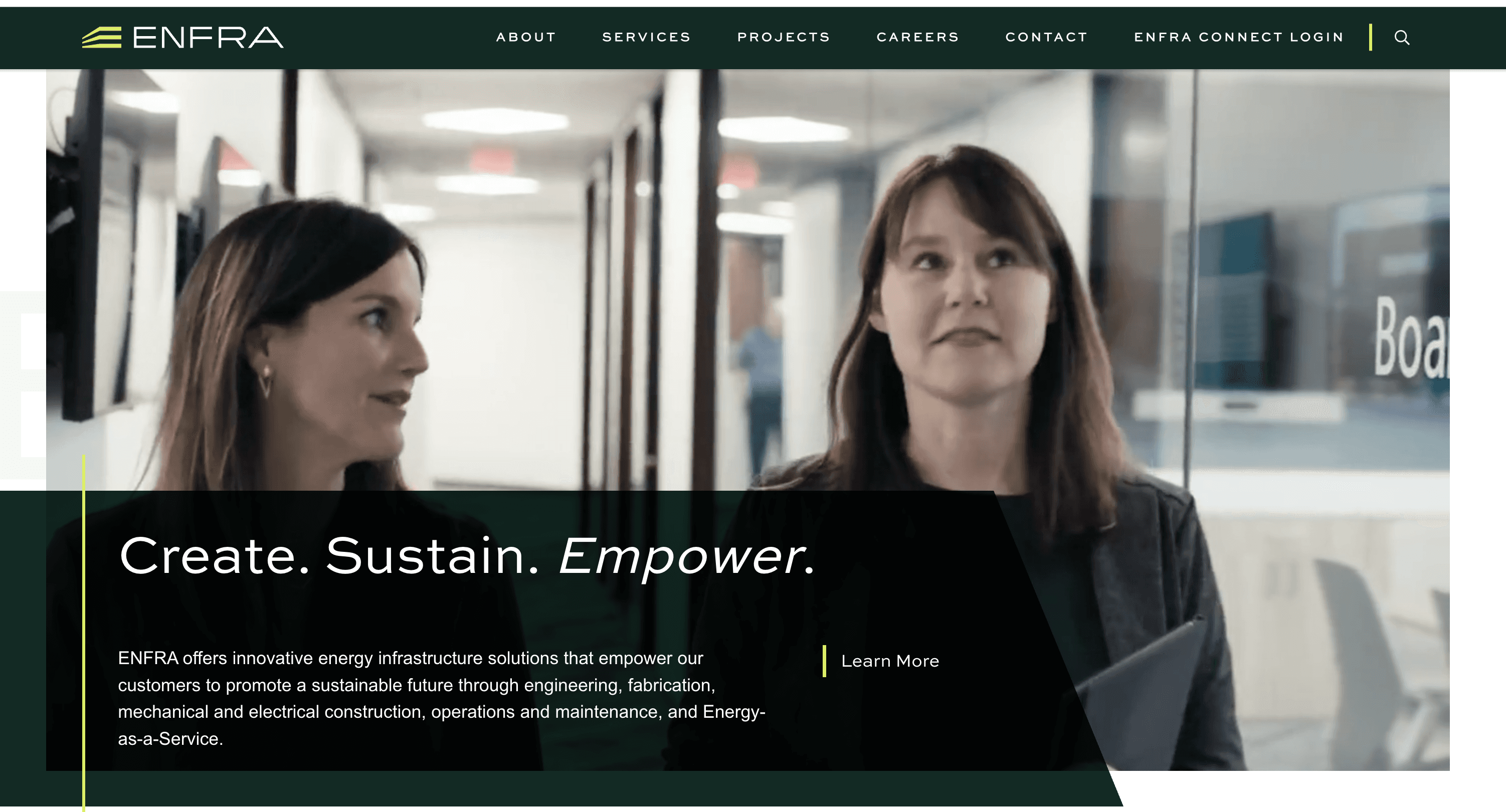 Strong, benefit-first headline: Create. Sustain. Empower.